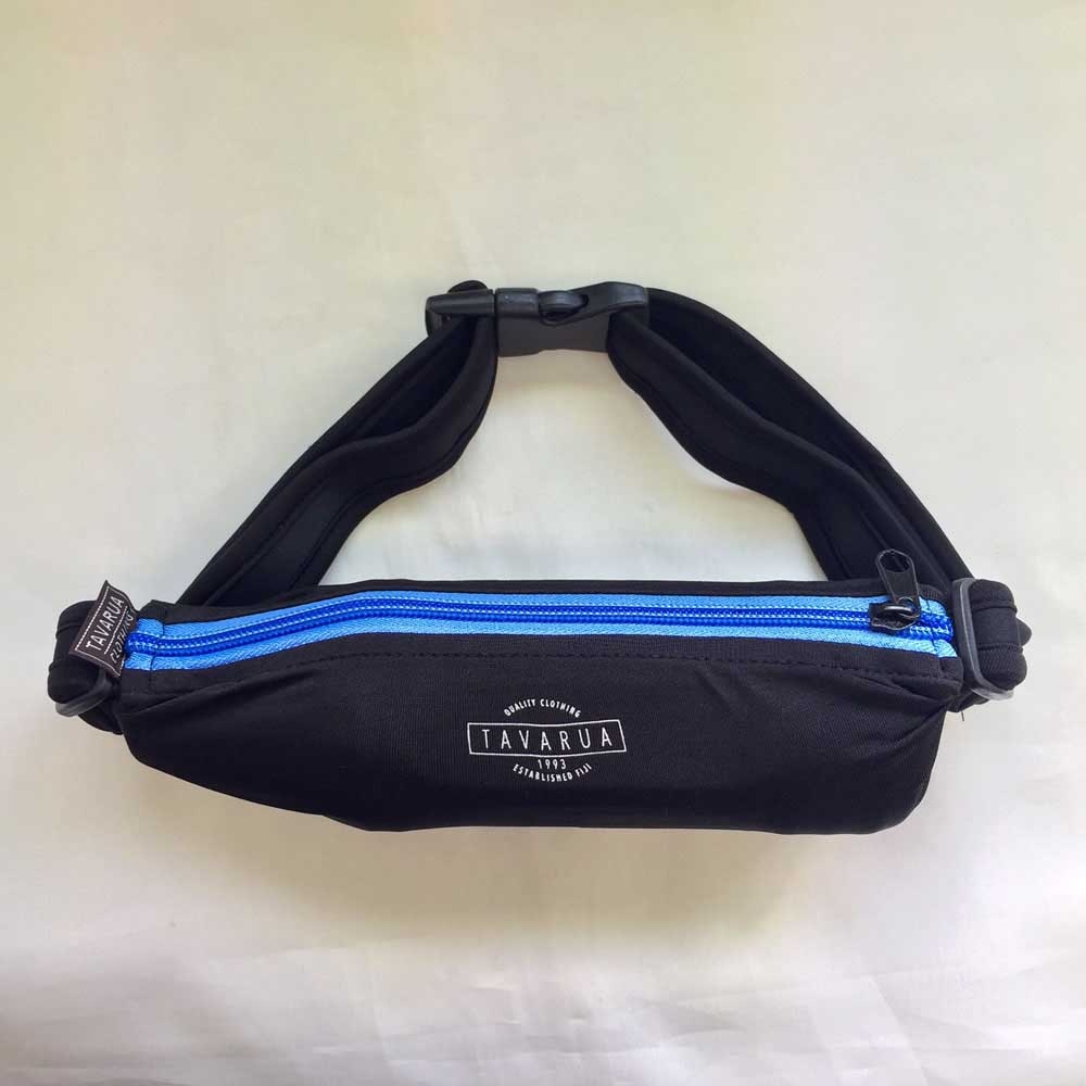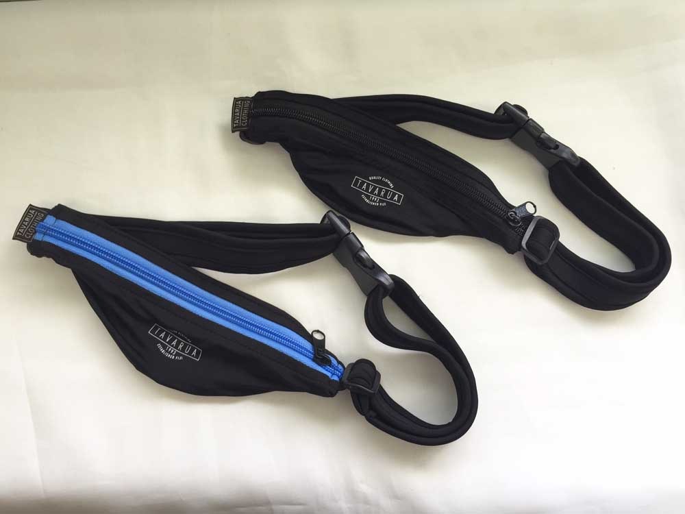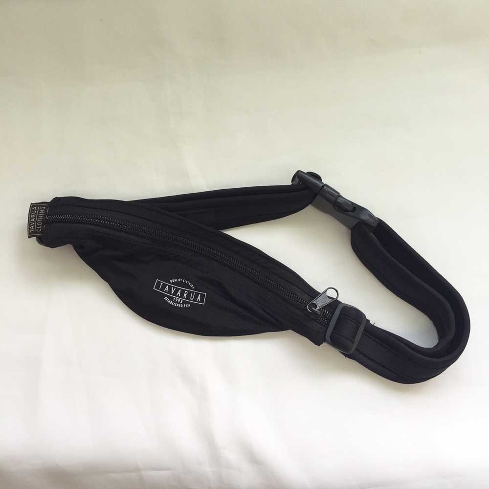 本体は伸縮性のあるナイロン素材を使用。ネオプレーン製のアジャスターストラップはサイズ調整可能、ウエスト又はショルダーへかけて着用できます。