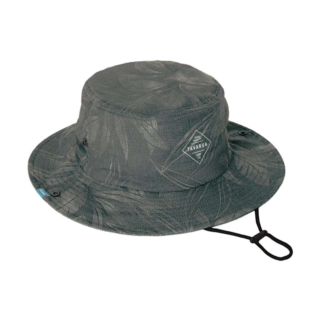 汗止めのスベリ部分は吸水速乾素材を使用。 フロント部のツバ芯や取外し可能な顎紐など、サーフハット機能を残し、海でも陸でも着用できるハイブリッド仕様。