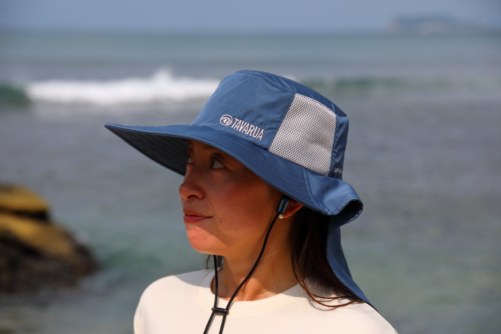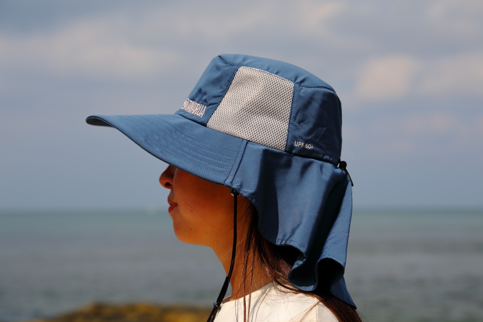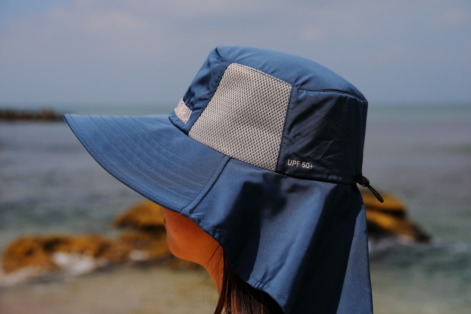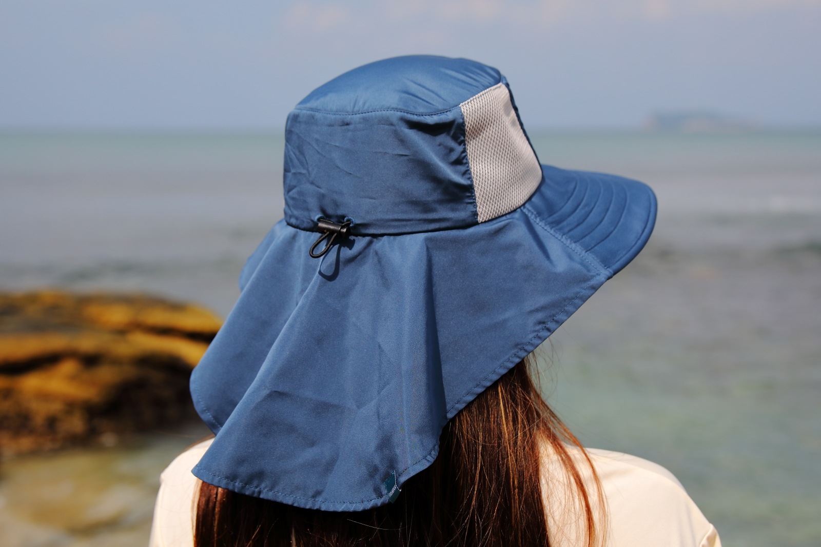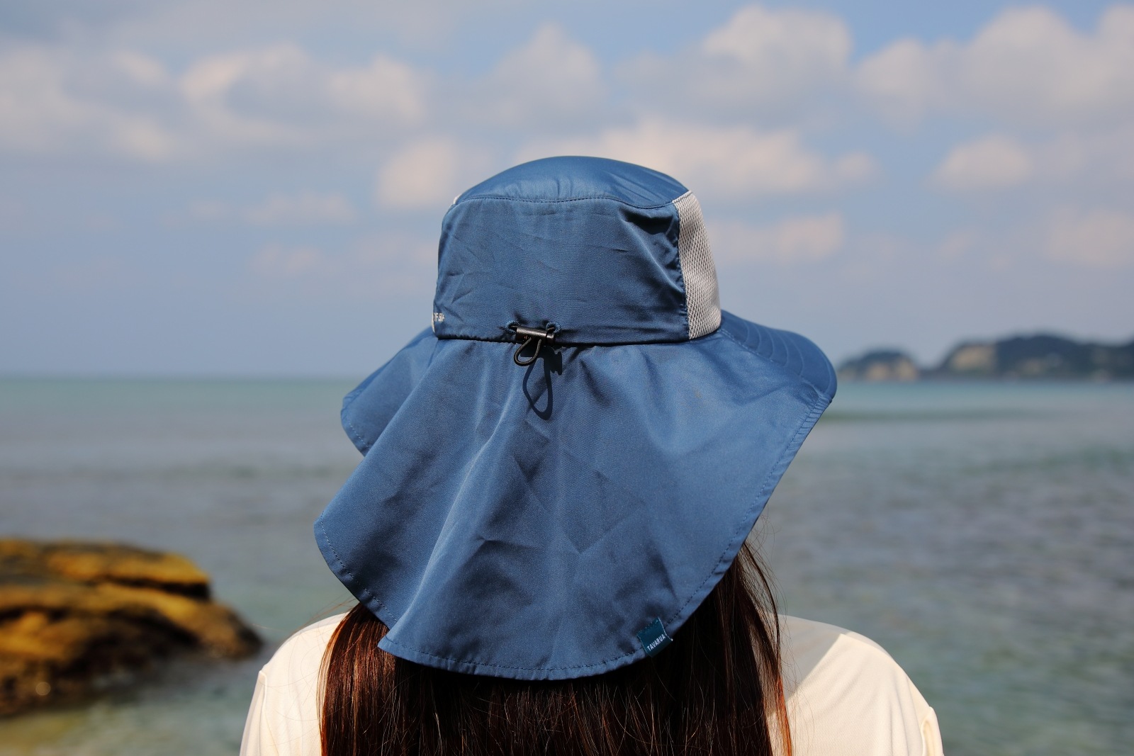 顔だけでなく、特に日焼けしやすい首の後ろまで広範囲をしっかりカバーするワイドなバックブリムが、長時間のアウトドアでも安心感を提供します。
