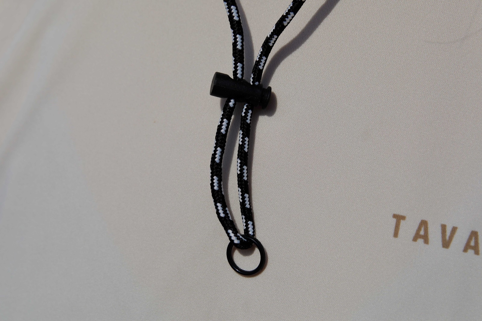 ソリッドカラー×モノトーンあご紐はアウトドアムード溢れる組み合わせです。